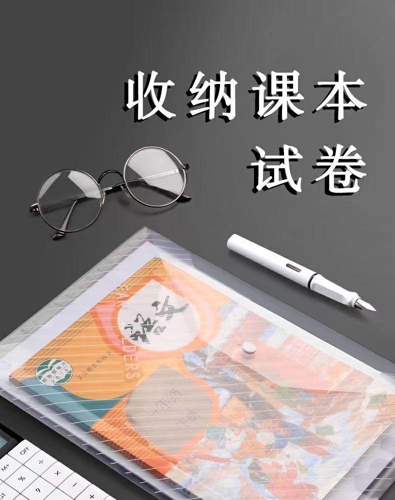 Large Capacity A4 File Folder with Transparent Plastic Snap Button